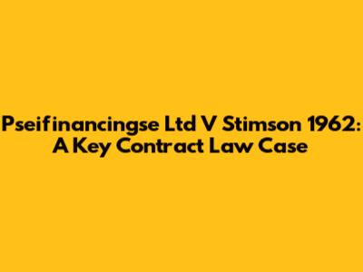 Pseifinancingse Ltd V Stimson 1962: A Key Contract Law Case