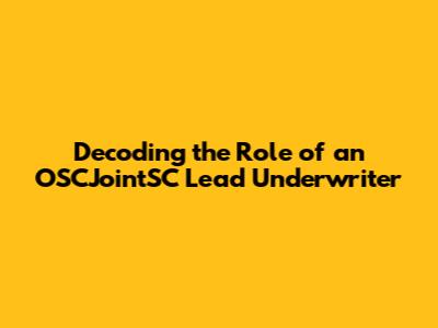 The OSCJointSC Lead Underwriter and Market Dynamics