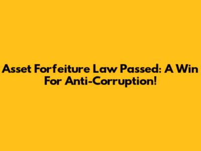 Asset Forfeiture Law Passed: A Win For Anti-Corruption!