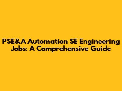 PSE&A Automation SE Engineering Jobs: A Comprehensive Guide
