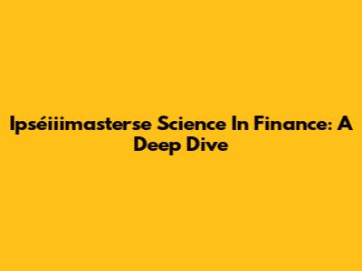 Ipséiiimasterse Science In Finance: A Deep Dive