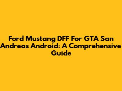 Ford Mustang DFF For GTA San Andreas Android: A Comprehensive Guide