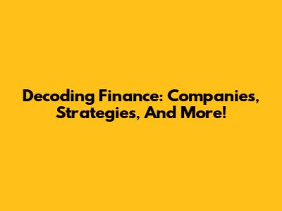 Decoding Finance: Companies, Strategies, And More!