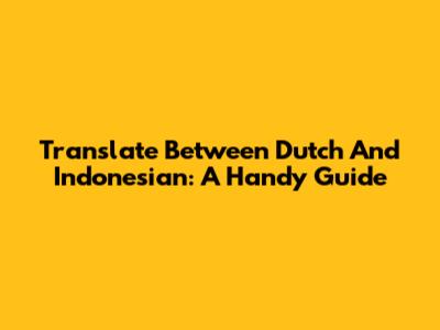 Translate Between Dutch And Indonesian: A Handy Guide