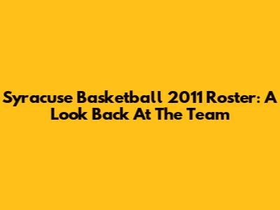 Syracuse Basketball 2011 Roster: A Look Back At The Team