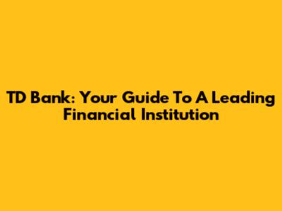 TD Bank: Your Guide To A Leading Financial Institution
