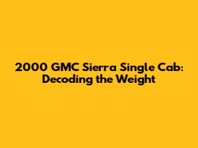 Hey there, truck enthusiasts! Ever wondered about the 2000 GMC Sierra single cab weight? You're in the right place! Understanding the weight of your truck is super important for a bunch of reasons – from figuring out towing capacity to ensuring you're within legal weight limits. Let's dive deep and get you all the info you need on the 2000 GMC Sierra single cab weight.