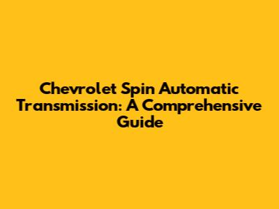Understanding the Chevrolet Spin Automatic Transmission