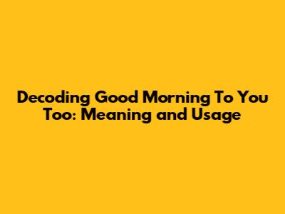 Decoding 'Good Morning To You Too': Meaning And Usage