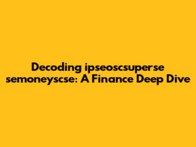 Let's dive into the cryptic world of "ipseoscsuperse semoneyscse finance." It sounds like a jumble of terms, right? But don't worry, we're going to break it down and explore what it might actually mean in the context of finance. This is where we put on our detective hats and try to make sense of what could be a specific financial concept, a typo, or even a code name used within a particular organization. Are you guys ready for this?