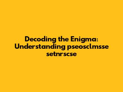 Have you ever stumbled upon a seemingly random string of characters and wondered what it could possibly mean? Today, we're diving deep into the mysterious world of "pseosclmsse setnrscse." Now, I know what you're thinking: "What in the world is that?" Don't worry, guys, you're not alone. It looks like a jumble of letters, but let's break it down and see if we can make some sense of it. Our goal here is to explore the possible origins, potential meanings, and any relevant context that might help us understand this intriguing sequence. So, grab your detective hats, and let's get started on this linguistic adventure!