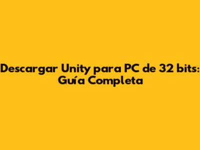 Descargar Unity Para PC De 32 Bits: Guía Completa