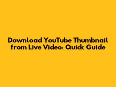 Download YouTube Thumbnail From Live Video: Quick Guide