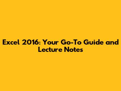 Excel 2016: Your Go-To Guide And Lecture Notes
