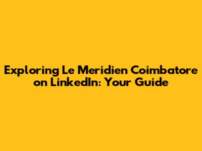 Explore Le Meridien Coimbatore On LinkedIn