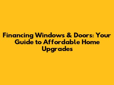 Financing Windows & Doors: Your Guide To Affordable Home Upgrades