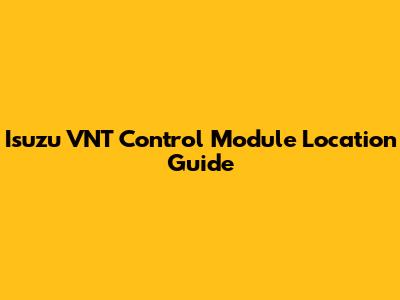 Find The Isuzu VNT Control Module: Location Guide