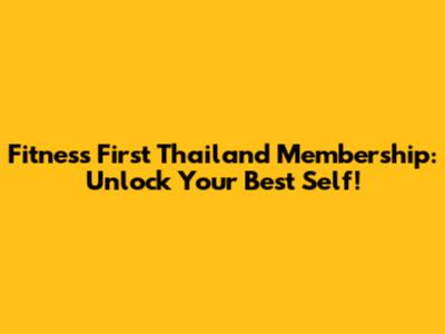 Fitness First Thailand: Unlock Your Best Self!