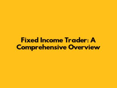 Fixed Income Trader: A Comprehensive Overview