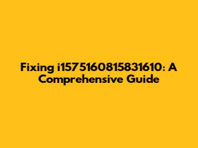 Fixing I1575160815831610: A Comprehensive Guide