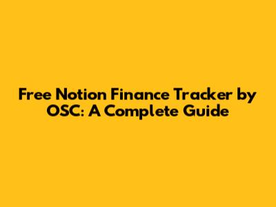 Free Notion Finance Tracker By OSC: A Complete Guide