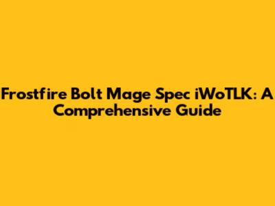 Frostfire Bolt Mage Spec IWoTLK: A Comprehensive Guide