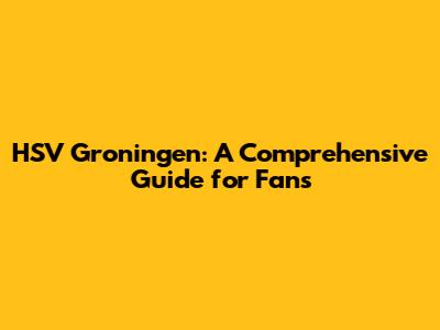 HSV Groningen: Your Ultimate Guide