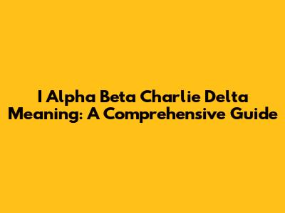I Alpha Beta Charlie Delta: Decoding The Meaning