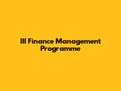 What is the III Finance Management Programme?