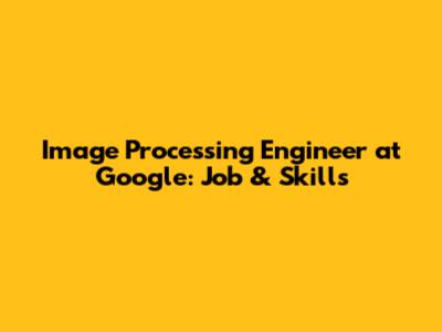 Image Processing Engineer At Google: Job & Skills