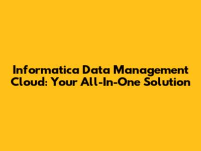 Informatica Data Management Cloud: Your All-In-One Solution