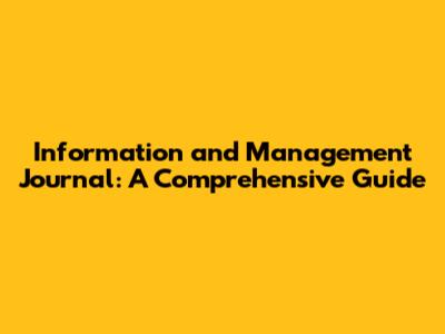 Information And Management Journal: A Comprehensive Guide