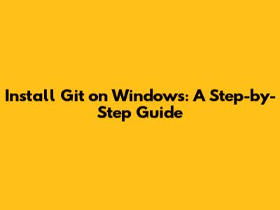 Install Git On Windows: A Step-by-Step Guide