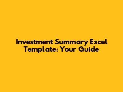 Investment Summary Excel Template: Your Guide