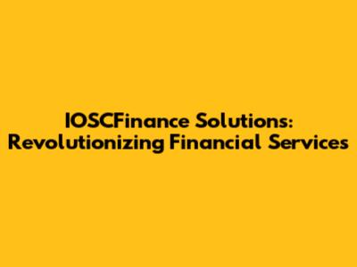IOSCFinance Solutions: Revolutionizing Financial Services