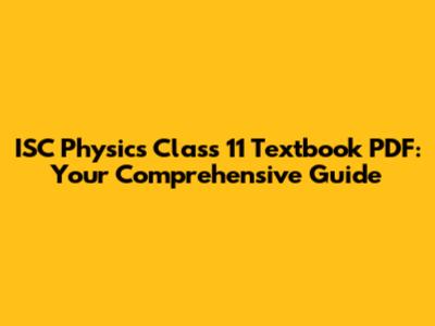 ISC Physics Class 11: Download Your Textbook PDF Now!