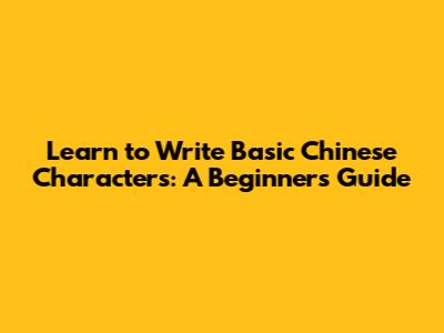 Learn To Write Basic Chinese Characters: A Beginner's Guide