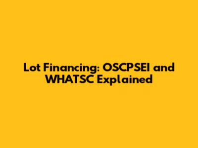 Lot Financing: OSCPSEI And WHATSC Explained