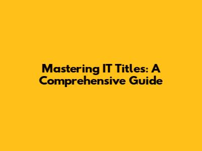 Mastering IT Titles: A Comprehensive Guide