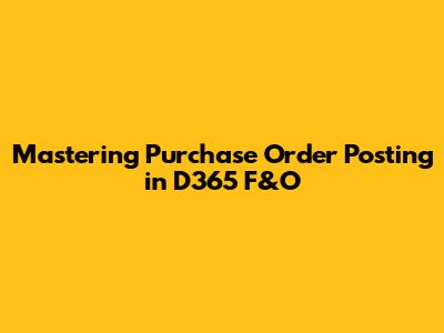 By configuring these settings and master data, you can ensure that D365 F&O is properly set up for purchase order posting.