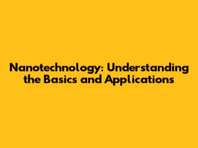 Nanotechnology: Understanding The Basics And Applications