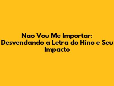 Nao Vou Me Importar: A Letra Do Hino E Seus Significados