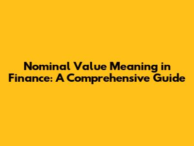Nominal Value Meaning In Finance: A Comprehensive Guide
