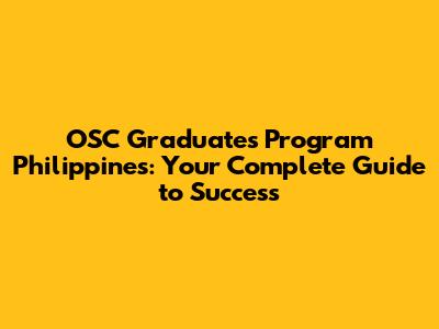 OSC Graduates Program Philippines: A Comprehensive Guide
