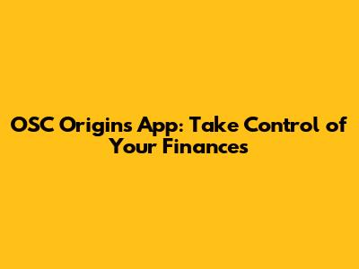 OSC Origins App: Take Control Of Your Finances