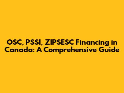 OSC, PSSI, ZIPSESC Financing In Canada: A Comprehensive Guide