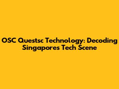 Hey guys, let's dive into the fascinating world of OSC Questsc Technology in Singapore. This company, and others like it, are really shaping the technological landscape of the Lion City. We're going to break down what they do, how they fit into Singapore's tech ecosystem, and why you should care. Buckle up, because we're about to embark on a tech journey!