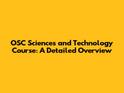 OSC Sciences And Technology Course: A Detailed Overview