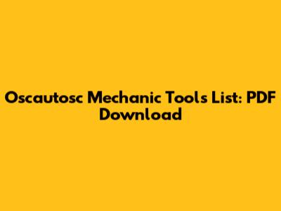 Oscautosc Mechanic Tools List: PDF Download