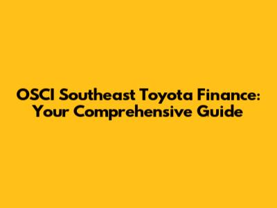 OSCI Southeast Toyota Finance: Your Guide